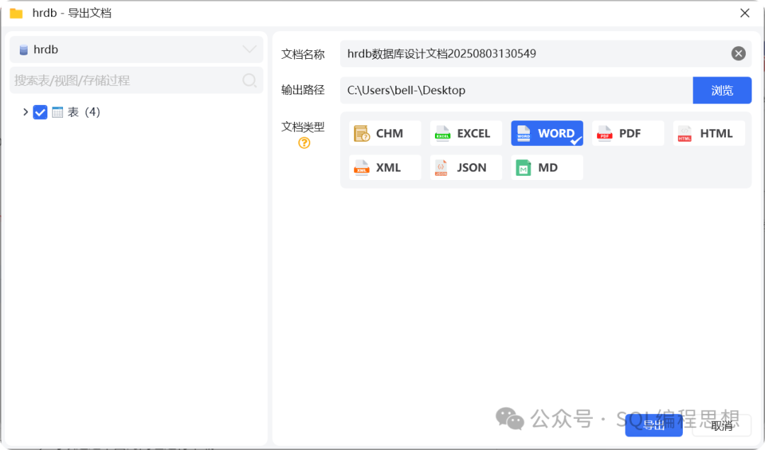 - • 丰富的文档格式:支持将数据库结构导出为 CHM、Excel、Word、PDF、HTML、XML、JSON、Markdown 等格式,满足不同场景的需求。