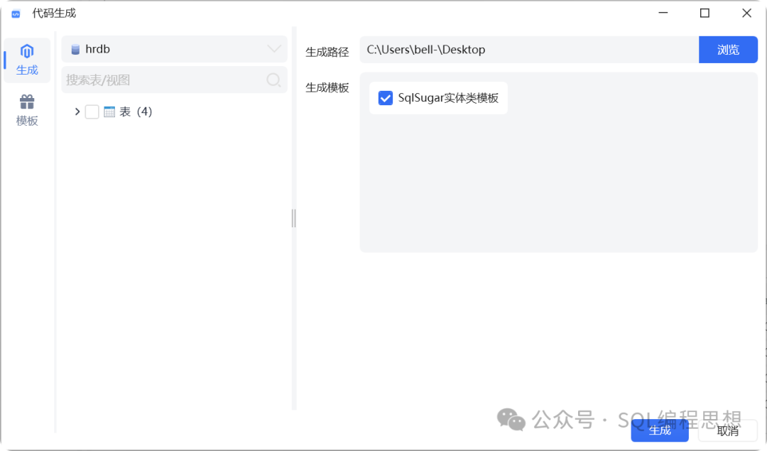 - • 代码自动生成:默认支持通过 SqlSugar 框架生成 C# 实体类代码,也可以通过代码模板进行自定义扩展。