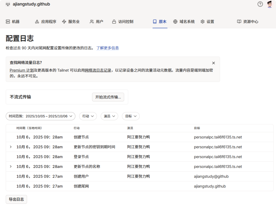 图形化配置,不用写防火墙规则。 ✅ 支持Exit Node你可以把某台设备设置为出口节点,比如: