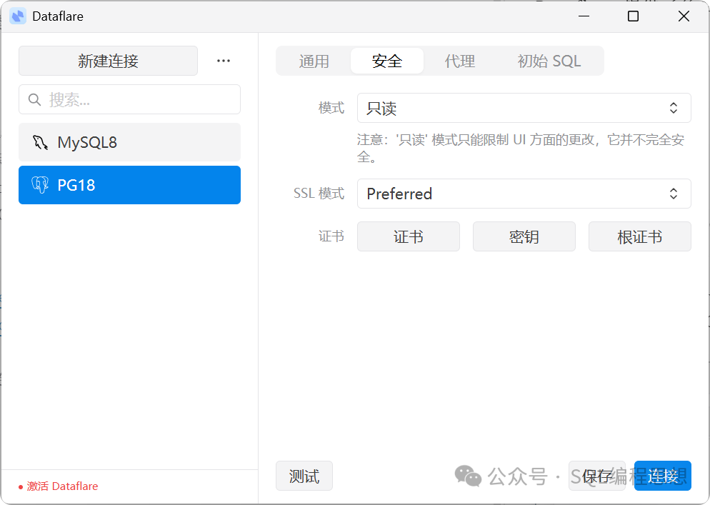 - • 只读模式:支持建立只读连接,防止误操作导致的数据问题。