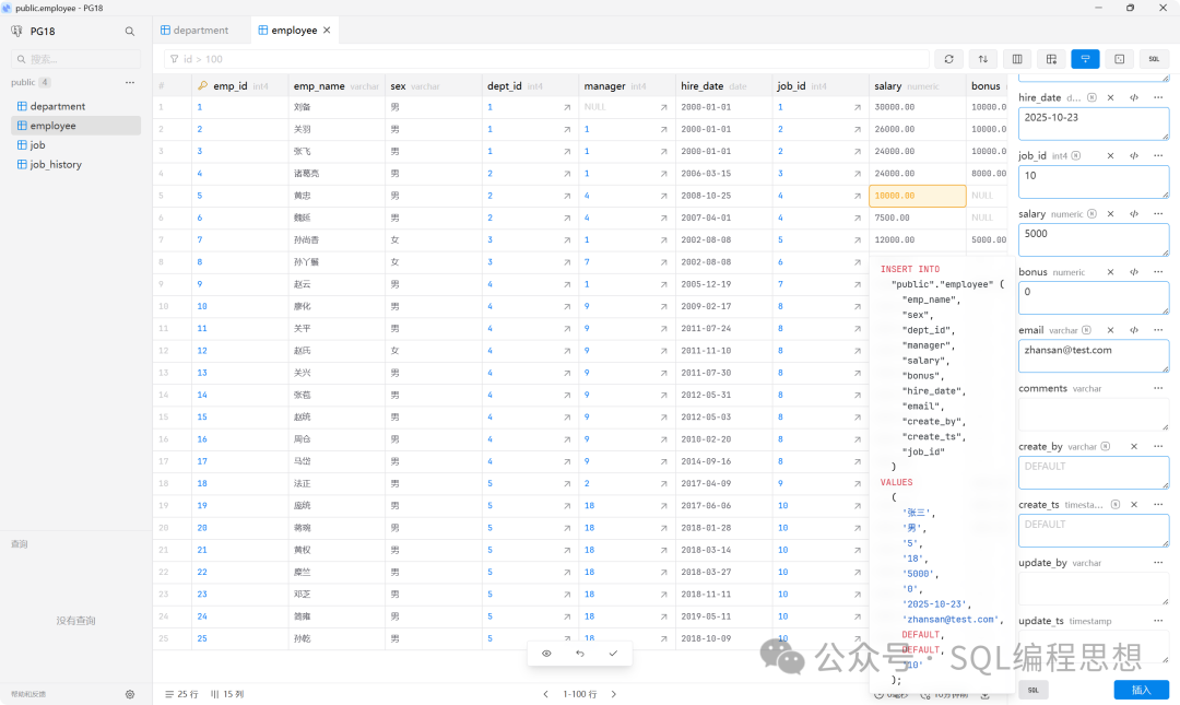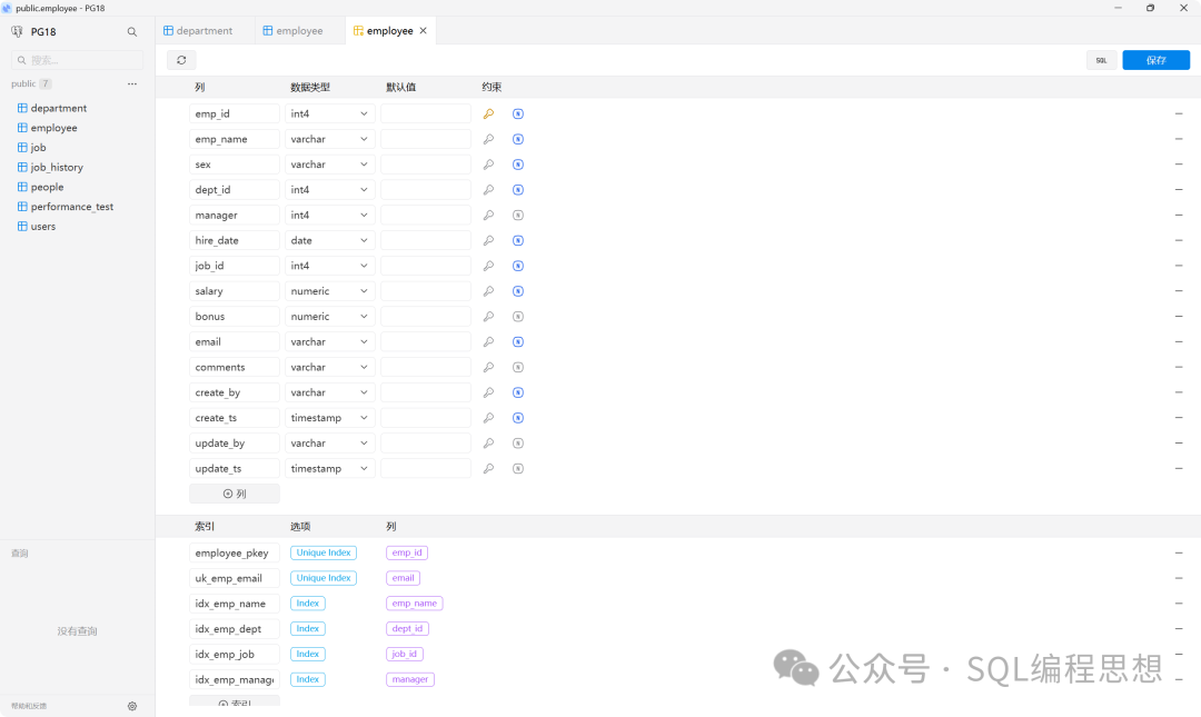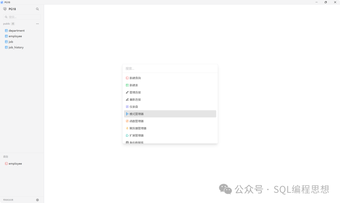 - • 对象管理:提供数据库、模式、表等对象的创建、修改、删除操作,同时提供 SQL 预览。