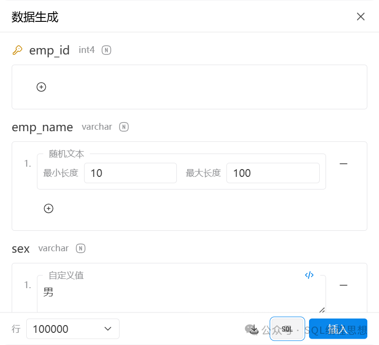 - • 数据生成:快速批量生成大量测试数据库,提供各种数据生成规则,支持直接插入或者导出 SQL 脚本文件。