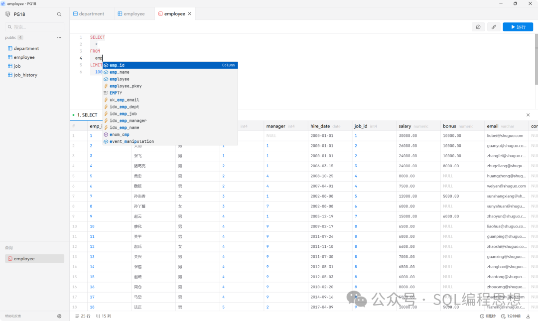- • SQL 查询:提供内置的 SQL 语句编辑器,支持语法高亮、代码补全、格式化、自动保存等功能。