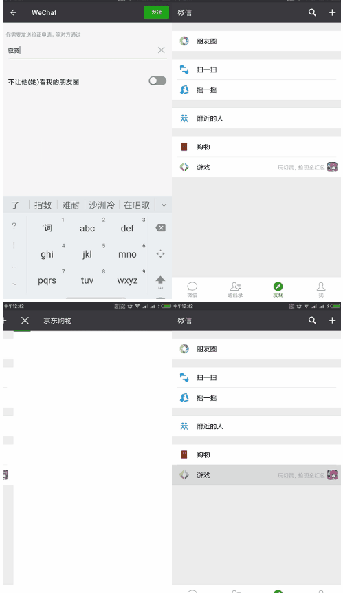 扫一扫:支持扫描二维码名片添加好友、支持从相册中选取要扫描的二维码