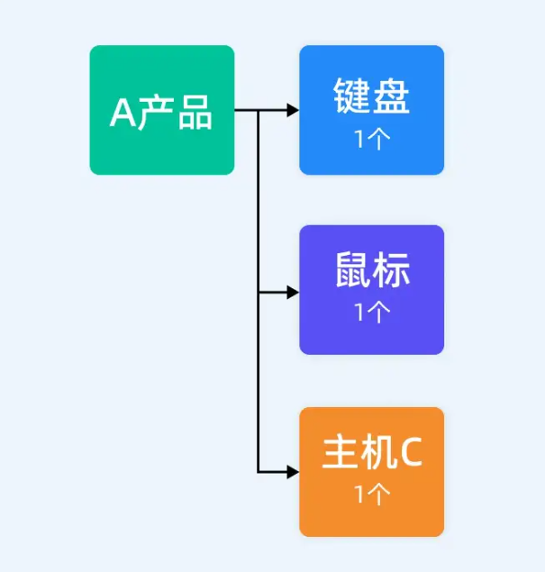 2、物料清单(BOM) 物料清单(BOM,Bill of Materials)是一份详细的列表,列出了生产最终产品所需要的所有原材料、部件及其数量。它就像是产品的“配方”或“食谱”,用来指导生产过程中需要哪些物料、数量及其顺序。BOM对于MRP系统非常重要,因为它帮助系统理解每种物料在生产过程中所扮演的角色,并计算出每个组件的需求。