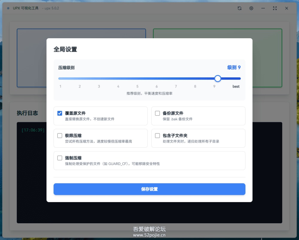 UPX5.0.2 现代化GUI,支持拖拽文件夹、多个文件、单个文件等操作。