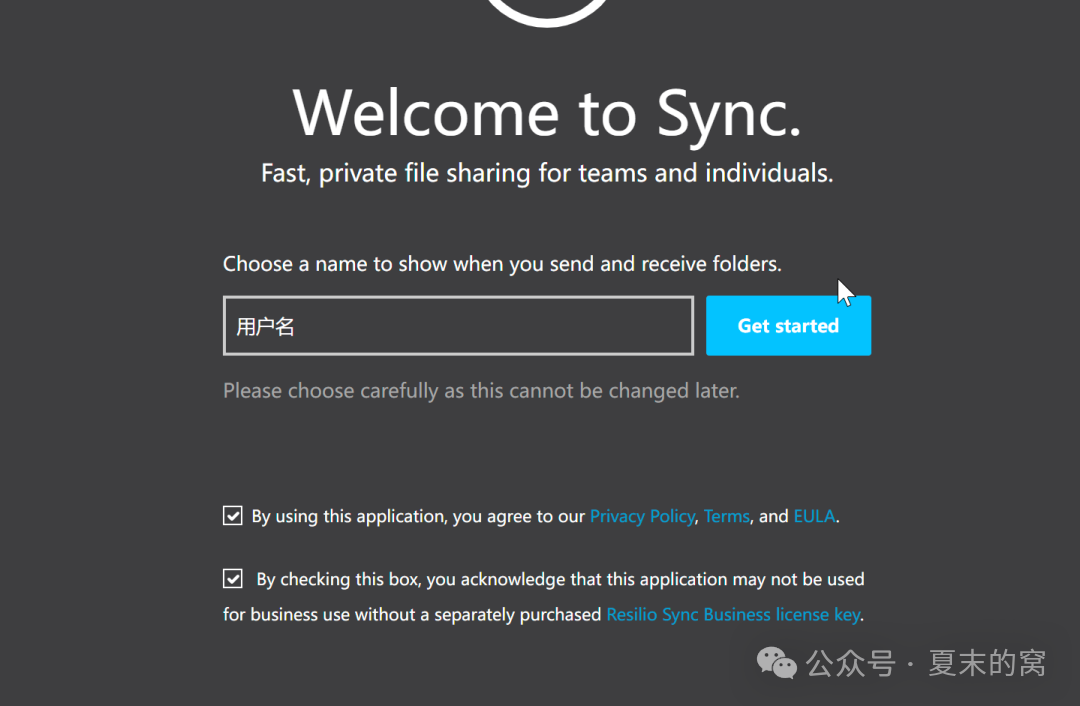 来到下图,输入界面显示的用户名,勾上下方的选项,然后点击“Get started”