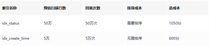 根据扫描行数、回表次数、排序成本,计算一个总成本的分数。
