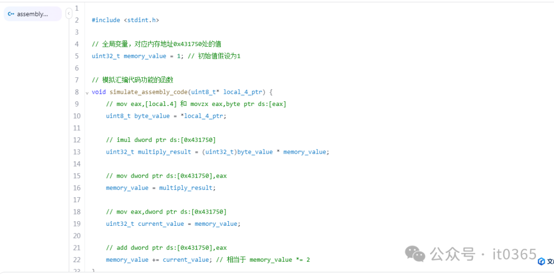 // 全局变量,对应内存地址0x431750处的值uint32_t memory_value = 0x29// 初始值假设为1