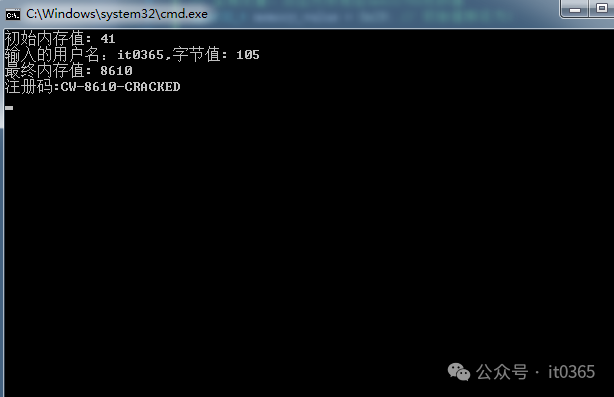 printf("最终内存值: %u\n", memory_value);printf("注册码:CW-%u-CRACKED\n", memory_value); // 注意:初始值在计算中使用了
