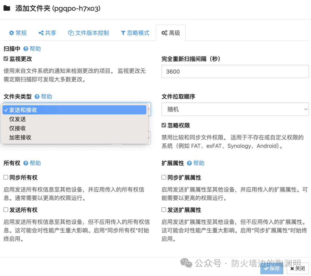 - • 确保 Syncthing 运行账号对目标目录有读写权限,否则会出现无法创建