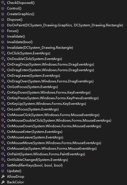 这个成员函数完整模拟了核心模块所依赖的标准System.Windows.Forms.Control的成员。