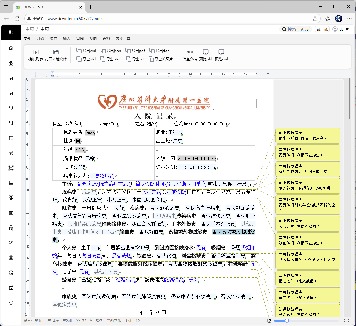经过上述操作,我们成功的将DCWriter编辑器的WinForm.NET版本迁移到Blazor WASM平台上,实现了一个纯前端的符合信创的编辑器组件。有兴趣可以看看演示页面(http://www.dcwriter.cn:5040/#/index),一个文档在WinForm.NET版本的显示如下图所示: