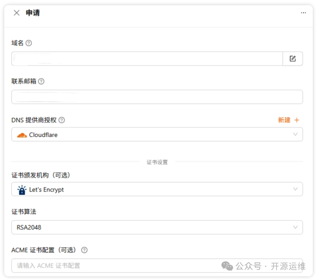你可以为自己的单域名、多域名、甚至泛域名一并自动申请证书,支持常见的 RSA、ECC 两种算法,申请方式可以选 DNS 验证或者 HTTP 文件验证。比如有时候手里有好几个二级域名,就可以打包一起搞定证书,省得分批来回折腾