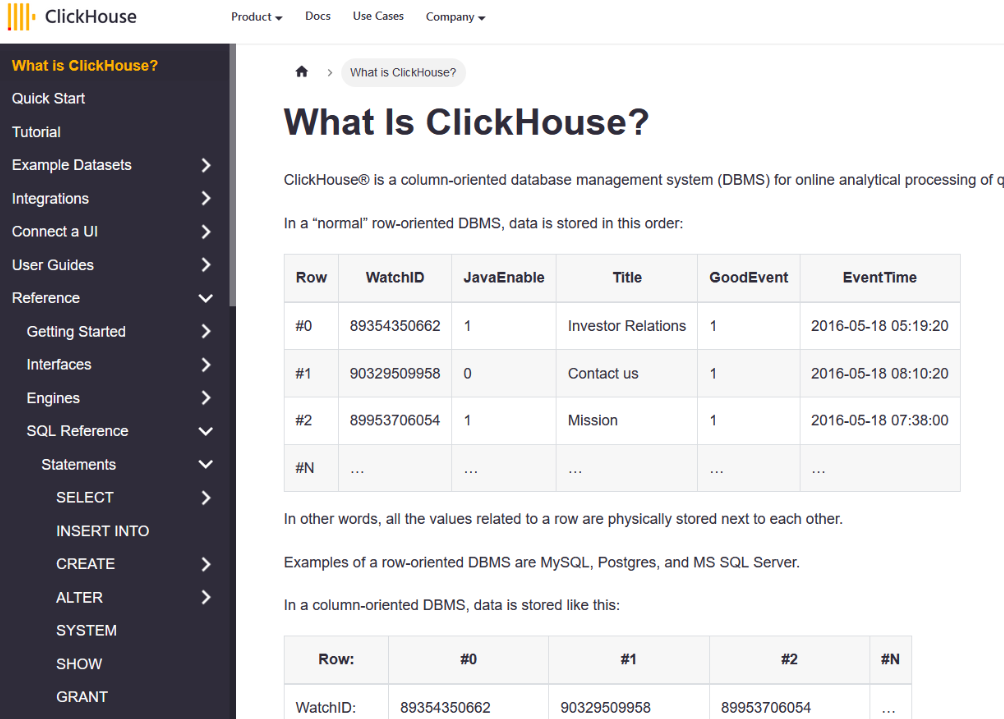 - 它是什么:一个用于在线分析处理的列式数据库管理系统。