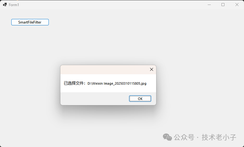 MessageBox.Show($"已选择文件:{selectedFile}");