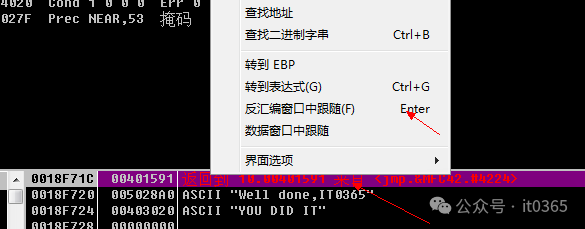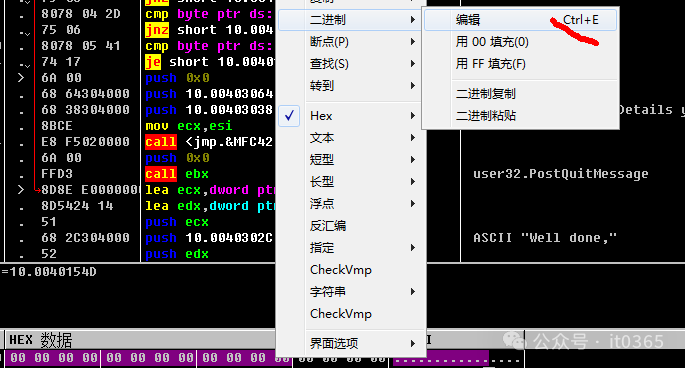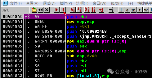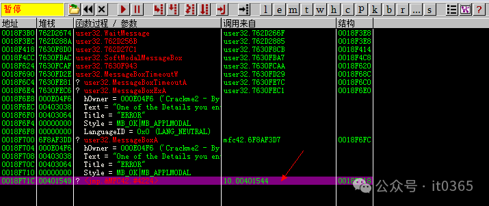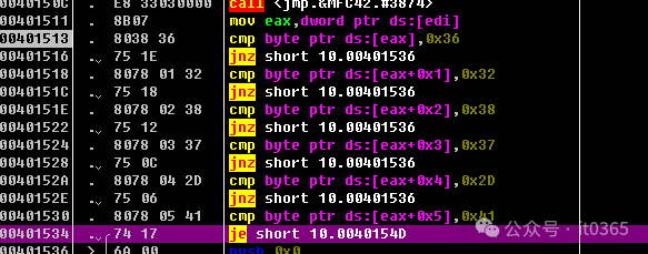 今天这个学习样本软件,非常简单,非常适合零基础朋友练手,快速入门软件逆向破解。 接下来跟着我一起最多花5分钟,你就能把这软件的注册码攻下来。还是老规矩,打开调试器OllyDBG,将要破解的软件拖进调试器里,F9运行它。点击CHECK后,点击调试器上的注意观看这里程序调用的地址。只有最后一条是软件地址中的调用。选择它按回车。0040183E $- FF25 7C214000 jmp dword ptr ds:[<&MFC42.#4224>] ; mfc42.#4224