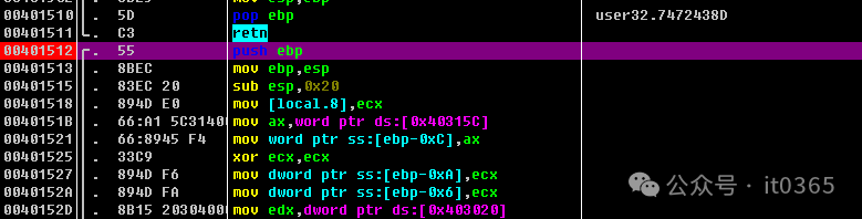 零基础入门软件破解逆向新手入门篇第11篇。继续学习分析逆向一款最简单的crackme软件。输入错误注册码直接报错。尝试找到关键位置破解软件直接注册或找到注册码计算的算法写出注册机。 打开反汇编调试器OllyDBG,将要破解分析的软件拖进OD内,直接F9运行起来。和前面几篇一样,运用F12大法快速找关键位置。 输入假的注册码后,点击Check按钮,弹出错误信息后。在OD调试器内按F12暂停软件,然后按alt+k观看是哪里调用了。观察到调用MessageBoxA函数提示框,有个是软件地址的调用。值得注意。下一条也是程序模块的调用。401512,直接双击看看刚好看到这个功能代码中有软件提示框的内容。大概这个功能就是要破解分析的关键内容。直接在段首下F2断点。F9运行软件,再次点击Check按钮直接断下来。继续分析。。。。。