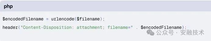 5. 安全审计和监控: • 定期审计:定期对应用程序进行安全审计,发现和修复潜在的CRLF注入漏洞。 • 监控日志:监控应用程序的日志,及时发现和响应异常行为。 6. 使用标准API: • 标准API:使用标准的API设置文件名或响应头,避免直接拼接用户输入。 • 示例: