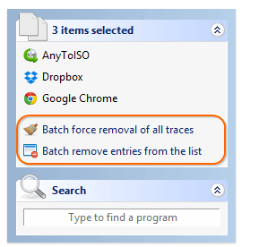 批量删除使用强大的卸载向导来查找和删除剩余的文件。