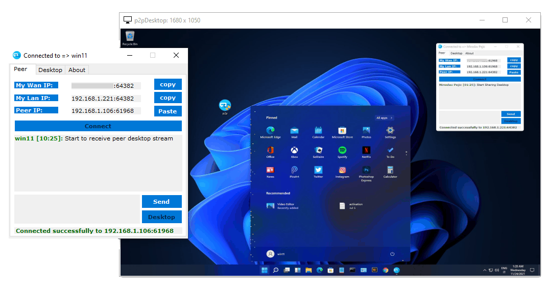 Connect. - The 2 peers now are able to