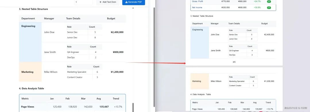 复杂表格分页效果