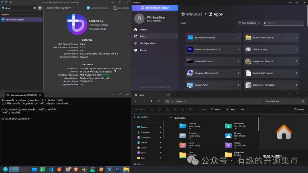 - 完整 Windows 桌面:除了运行单个应用程序外,WinBoat 还允许你访问完整的 Windows 桌面环境,满足你所有的 Windows 需求。