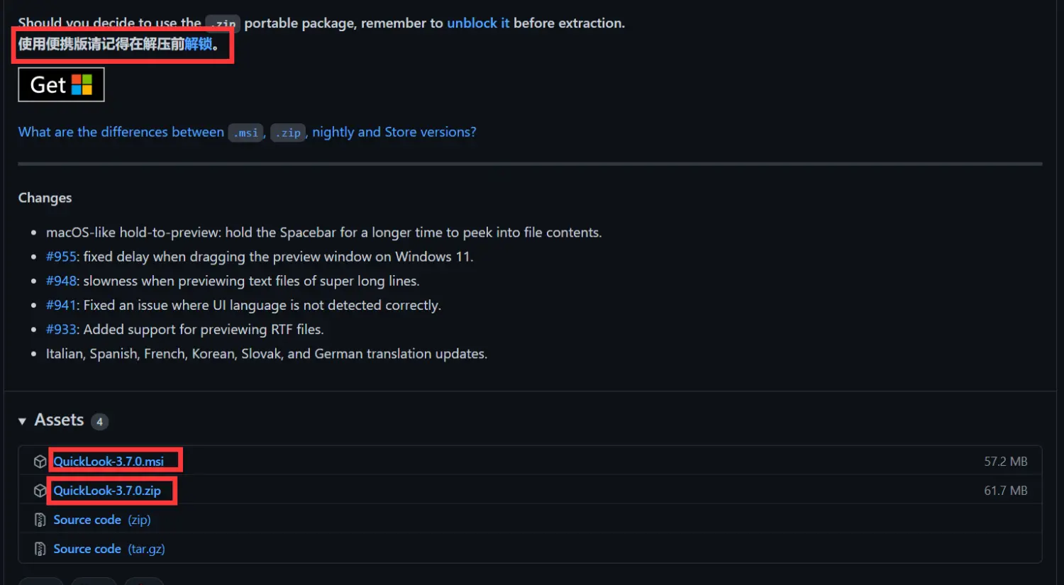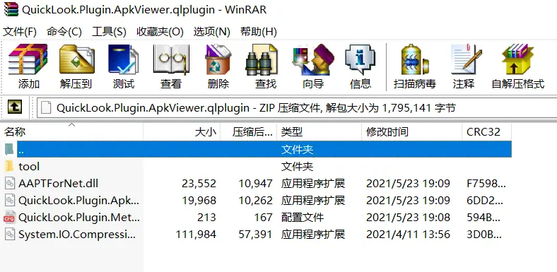 [Windows] QuickLook插件 OfficeViewer V6 1.情景展示QuickLook软件,在不打开文件的前提下,可以快速预览文件内容; 2.下载及安装下载地址:GitHub-QuickLook ![]() 红框位置,将会显示最新版本 点击:Latest,来到对应版本下载页; ![]() 提供了两种版本 一种是:安装版(.msi格式); 我用的是免安装版的; ![]() 解压,双击运行QuickLook.exe即可启动使用; ![]() 在桌面右下角,我们可以选择:启动是自动运行(也就是开机启动) ![]() 3.插件下载便携版预装插件有: ![]() 也可以点击上图当中的“获取新插件”,打开下载地址。 4.插件安装选中已经下载好的插件,按空格键,将会出现安装弹窗; ![]() 点击“安装此插件”; ![]() 出现这个提示,就安装成功啦,重启QuickLook即可(退出,然后重新打开)。 ![]() 具体报错信息在你的QuickLook安装子目录下: E:\QuickLook-3.7.0-PE\UserData\QuickLook.Exception.log ![]() 会被记录在QuickLook.Exception.log中 5.插件卸载由于我这个是便携版的,所以,手动安装的插件会被统一安装在: E:\QuickLook-3.7.0-PE\UserData\QuickLook.Plugin 将不需要的插件,目录,按delete键删除即可。 题外话 ![]() 里面的文件就是实现预览的必须文件。 插件原址:https://github.com/QL-Win/QuickLook/wiki/Available-Plugins 软件原址:https://github.com/QL-Win/QuickLook/releases 各版本 常用插件 打包分流: 百度:https://pan.baidu.com/s/1pMjU3O3wb4WesiSUTdAlnA?pwd=52pj 提取码: 52pj 夸克:https://pan.quark.cn/s/8a577aeae031?pwd=96w5 提取码:96w5 迅雷:https://pan.xunlei.com/s/VOhNRf6xlJK4AKD0AUhgrYa5A1?pwd=qfs6# 插件安装方法:选中已经下载好的插件,按空格键,将会出现安装弹窗,点击“安装此插件” 该文章在 2025/12/31 16:36:03 编辑过 |