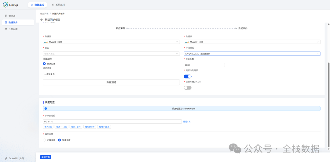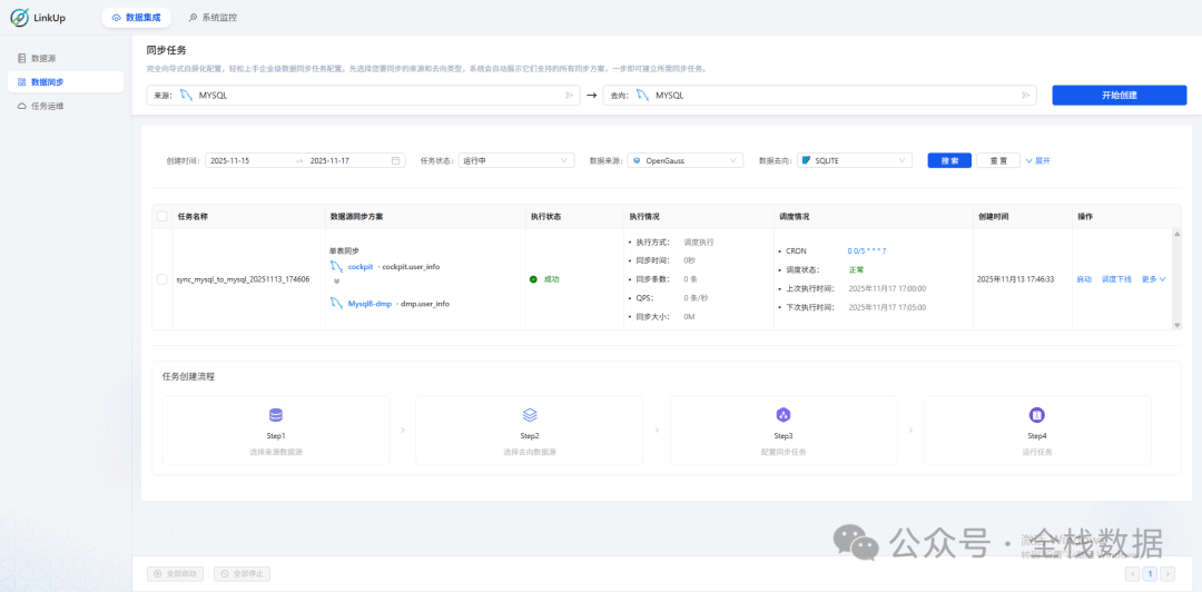 LinkUp 是一款开箱即用的数据同步工具,深度集成 Apache SeaTunnel,提供从自动建表、任务调度到日志监控的全链路能力,界面直观,非技术人员也能轻松上手。