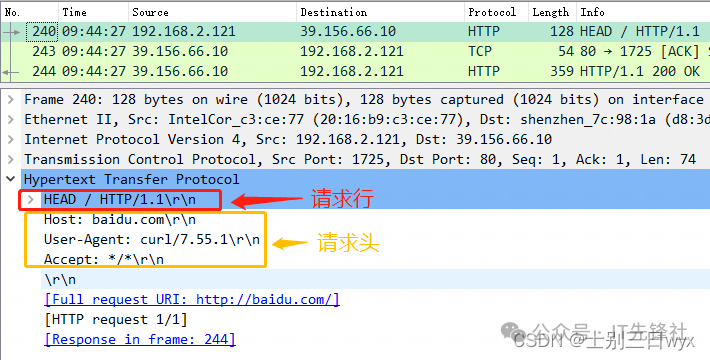 - 1. 第一个包是,我(192.168.2.121)向百度(39.156.66.10)发送了一个「HTTP请求」,请求类型是HEAD