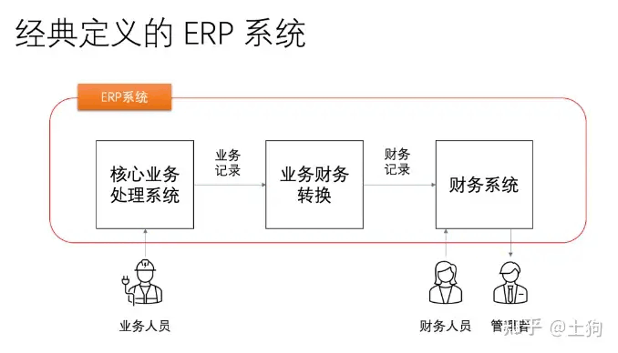 第一,业务人员在系统里处理核心业务,例如制造企业的采购、生产、库存、销售等活动 或者物流企业的接单、运输、仓储、派单、收款等活动,或者人力资源外包服务公司的签约、订单、履约、开票、清账等活动。