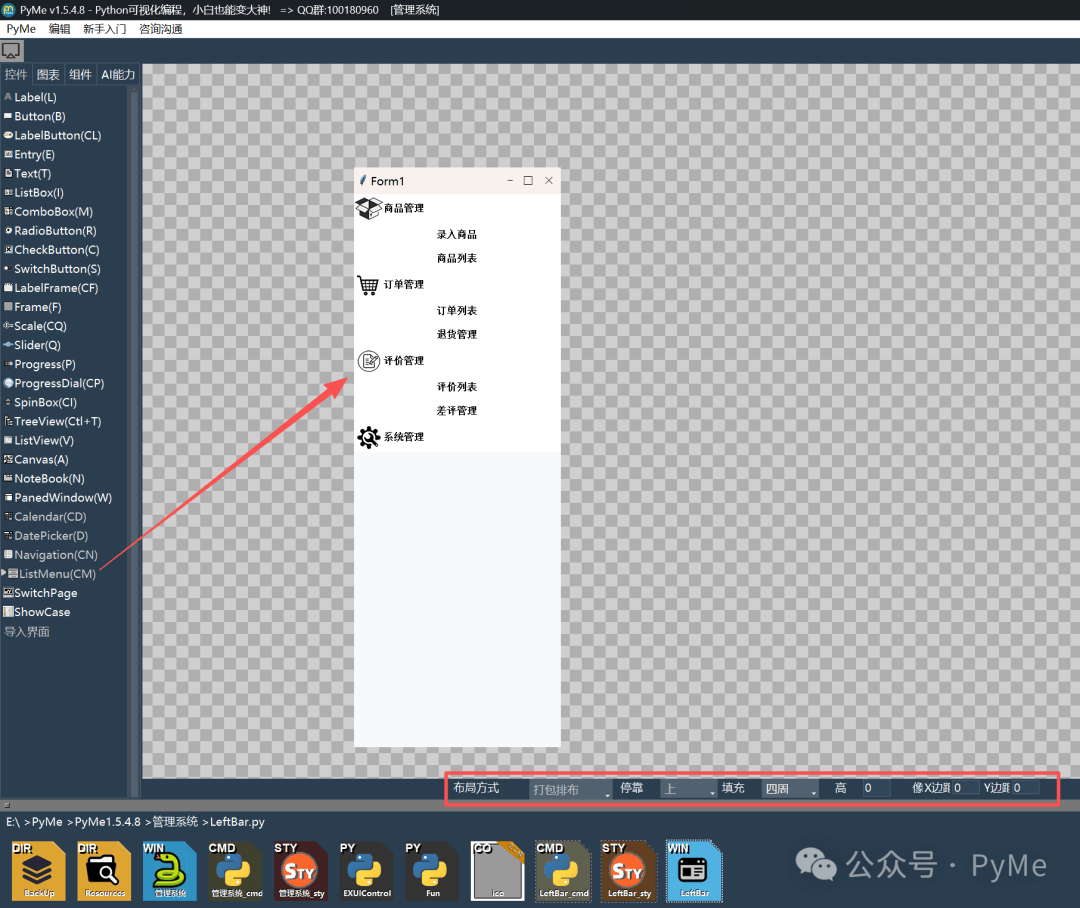 PyMe不是又一个“玩具级”编程学习工具,而是专为商业软件开发设计的全流程可视化专业平台。它将Python开发的各个环节——界面设计、逻辑编写、调试测试、打包发布——无缝整合到一个直观的可视化环境中,让你像搭积木一样构建专业级应用。 PyMe的四大核心优势,直击独立开发痛点:1. 拖拽式界面设计,美与实用兼得