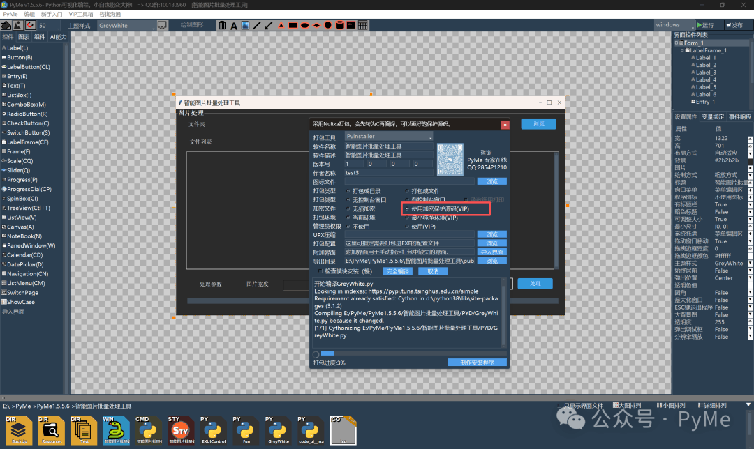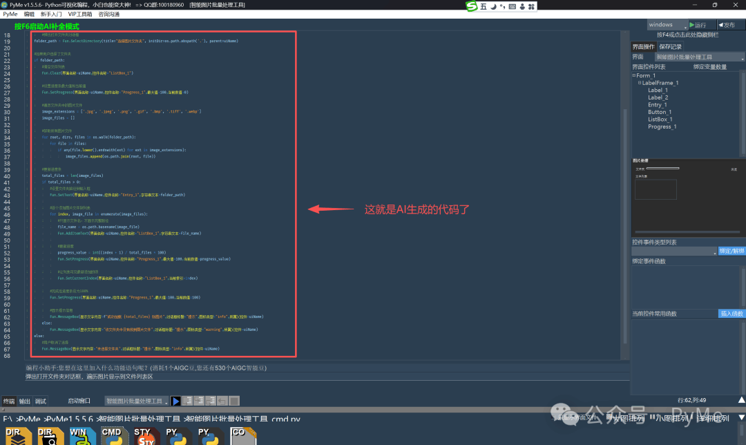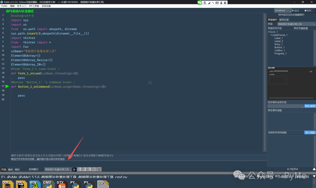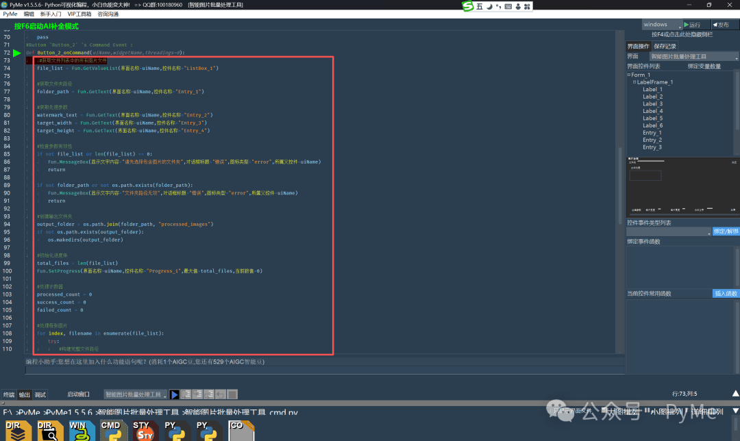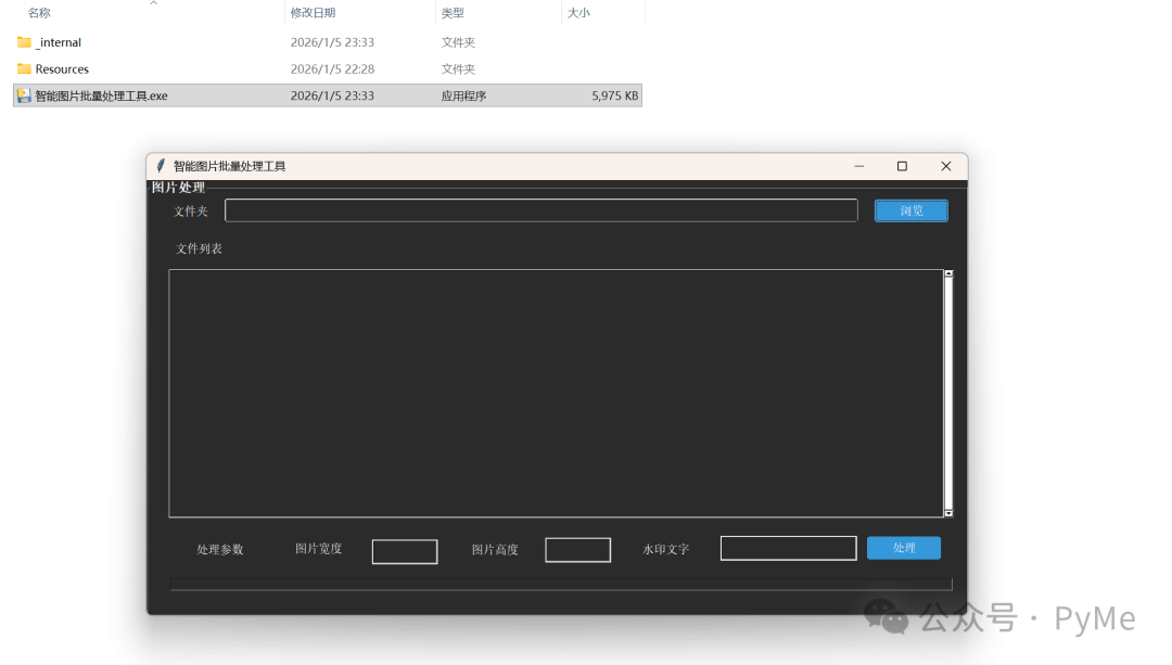 轻装上阵,效率翻倍!PyMe 1.5.3.7发布:纯净环境打包让EXE体积直接“减半” 4. 可视化工作流,开发过程一目了然 从想法到产品:跟着PyMe开发你的第一个商业软件(实战演练)让我们用一个具体案例,看看普通人如何用PyMe快速开发出有商业价值的软件: 项目:智能图片批量处理工具 开发流程: 第一步:界面设计(3分钟)