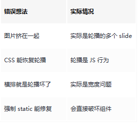 position: static !important; display: block !important; 结果:轮播结构被破坏,问题更严重