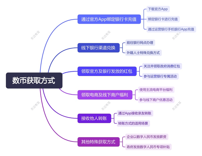 比较常见的就是第一种,就是自己将银行卡的存款充值到数币钱包中,实际上就是从银行取电子现金放到电子钱包,本质上是取现。