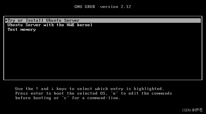 等待 ISO 加载 → 出现 Ubuntu 启动界面,选择「Install Ubuntu Server」→ 回车;