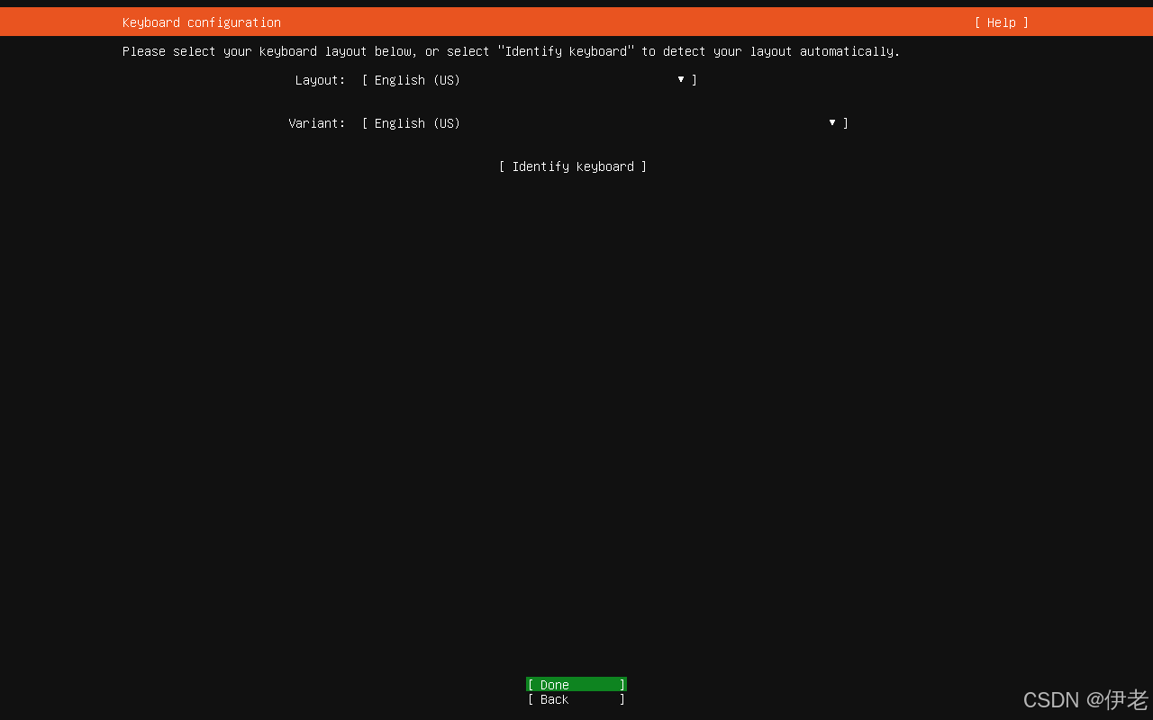 默认: English(US)「Done」→ 回车;