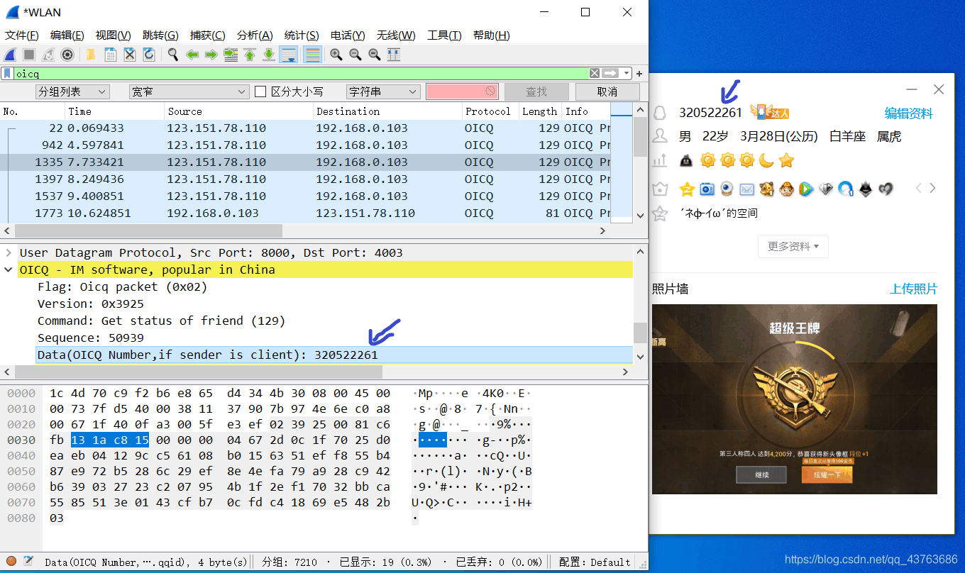 过滤 QQ 数据包:按下 Enter,过滤所有 QQ 数据包。