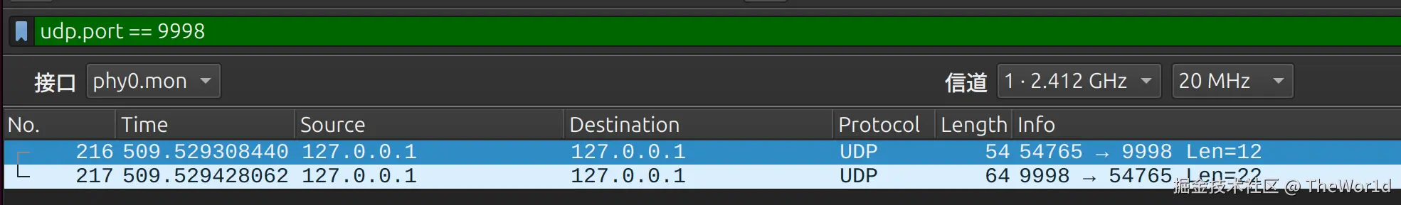 lo(环回) - 过滤器: tcp.port == 9999