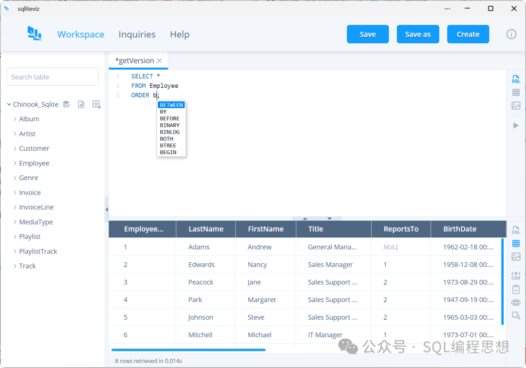 • • SQL 支持:使用 SQLite 作为查询引擎,支持标准 SQL 语句过滤、排序、连接、子查询、聚合、窗口函数等数据处理功能。