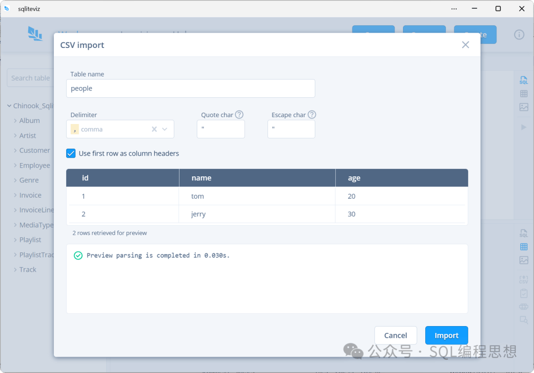 • • 导入导出:支持读取 SQLite 数据库以及 CSV、JSON、NDJSON 格式文件,支持导出 SQLite 数据库以及 CSV 文件。