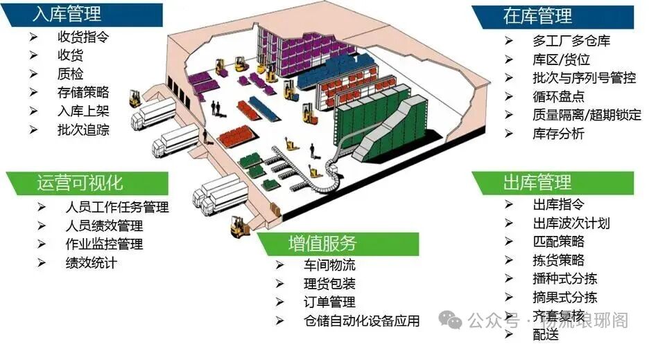 1、库存管理:跟踪和管理仓库内的所有货物和库存,包括收货、存储、拣选、装运和盘点。