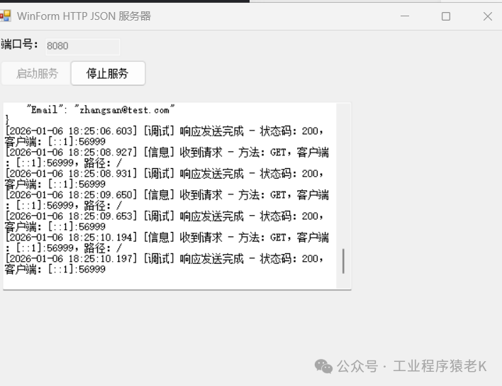 HttpListener实现,能够稳定处理 JSON 格式的 GET/POST 请求,核心是异步监听 + 多线程处理请求,避免阻塞 UI。 - 2、关键要点:需要管理员权限运行、正确处理跨线程 UI 更新、严格遵循 HTTP 响应规范(设置 Content-Type、关闭响应流)。