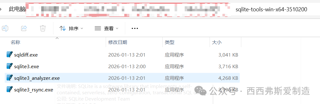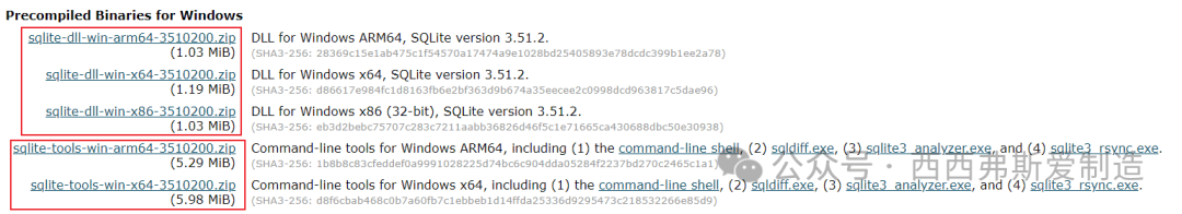 下载主要有两类:上面的第一类包含动态库和一些扩展文件,第二个包含相关的可执行文件,读者需要根据电脑类型下载对应文档。常见可择下载库文件:sqlite-dll-win-x86-3490100.zip 或者 sqlite-dll-win-x64-3490100.zip,下载操作工具:sqlite-tools-win-x64-3490100.zip。