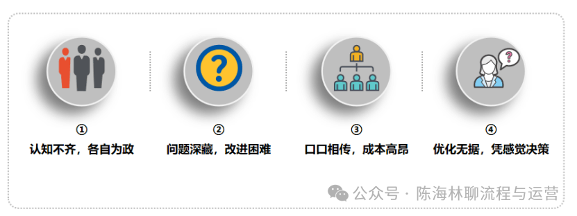 没有流程图的四大痛点图 1. 认知不齐,各自为政 销售认为合同评审需1天,法务坚持3天,财务说要5天。公司管理缺乏共同视图,部门间宛如“盲人摸象”,协作效率低下。 2. 问题深藏,改进困难 流程中的瓶颈、冗余、断点,藏在日常操作里。就像冰山,你只看到表面的延误与错误,却看不到系统性的结构问题。 3. 口口相传,成本高昂 新员工入职只能“口口相传”,效果全凭老员工经验与耐心。人员变动,流程即变,组织知识,难以沉淀。 4. 优化无据,凭感觉决策 没有流程图,优化就像“闭眼打靶”——看不到问题在哪,也不知道问题在哪,更不知道改变后效果如何。 流程图绘制本身就具有价值: 某制造企业绘制生产流程图时,发现一个小零件竟在仓库与生产线间被搬运6次。一张图,让所有人看清了隐形的浪费。 遵循流程图标准建模的三大价值: