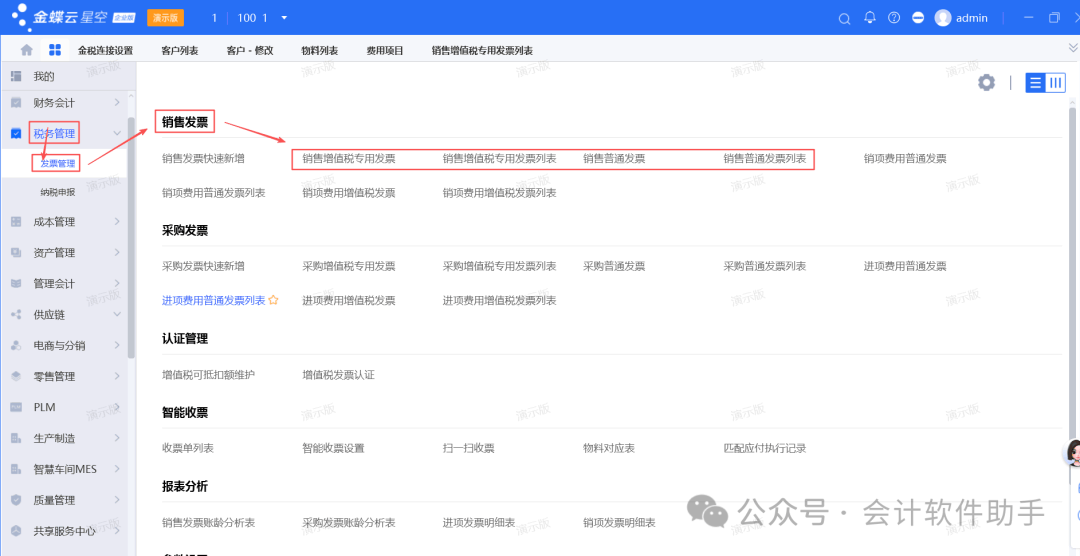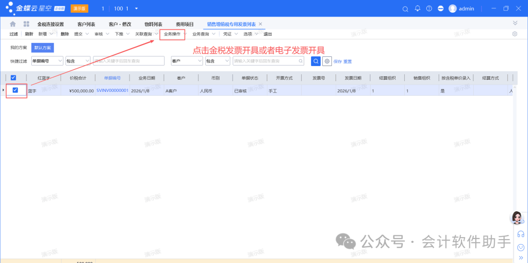 [点晴模切ERP]金蝶云星空-销售发票开票流程
