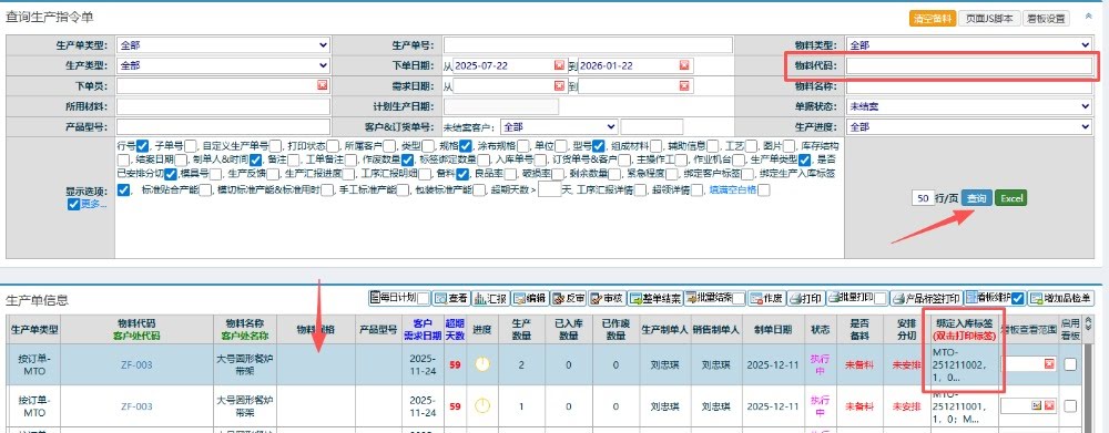 点晴模切ERP-生产入库物料包装:主材批号操作流程