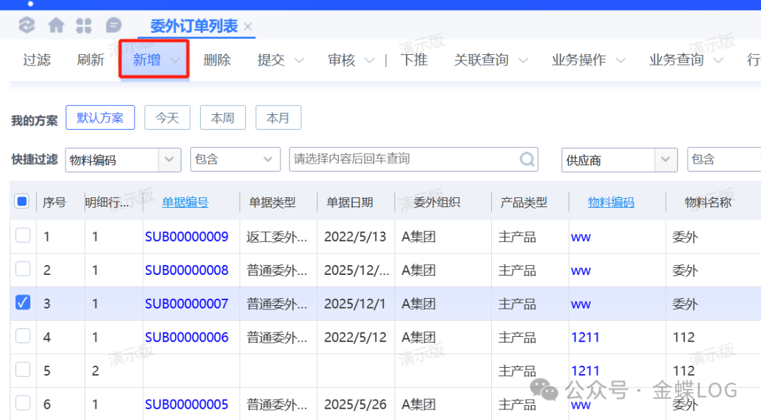 场景二:工单材料领用数量按实际入库数量发的 直接新增一张新的委外订单,将剩下未领用的材料在新的工单上发料,然后正常下推采购订单进行入库。
