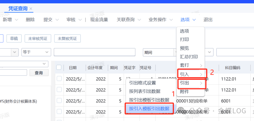 ③按引入模板引入凭证可以在凭证查询界面通过【按引入模板引出数据】按钮引出模版,然后在EXCEL表根据引出的格式整理新的凭证数据,再将其引入进去。