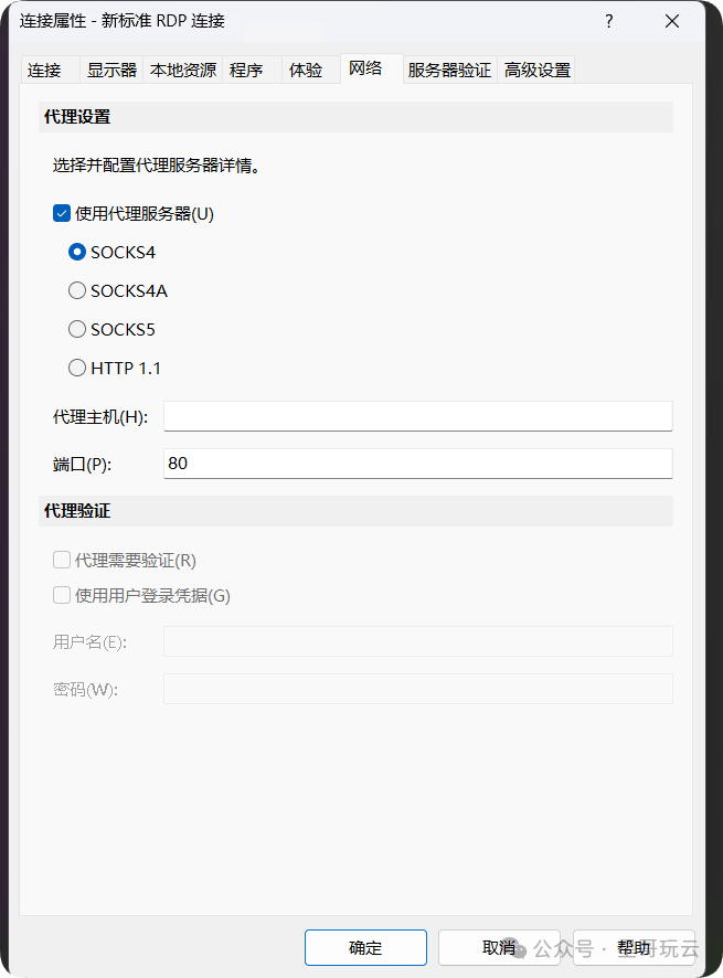 这两个协议基本覆盖了大多数代理场景。 ![]() 4. 填写代理信息包括: